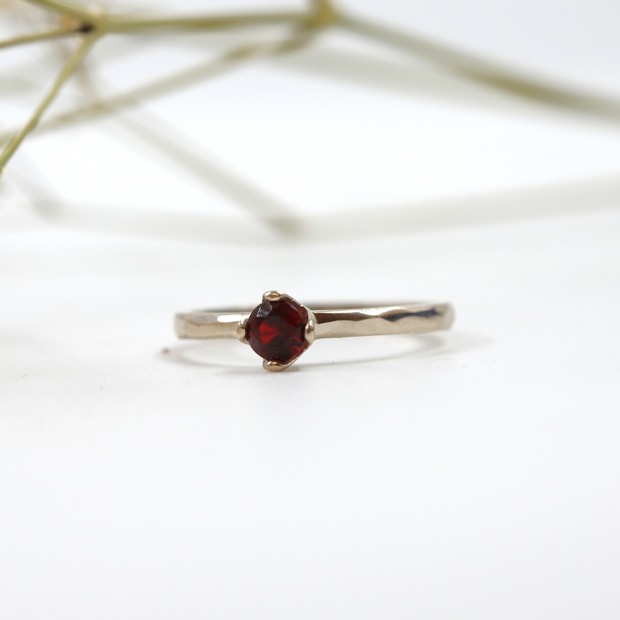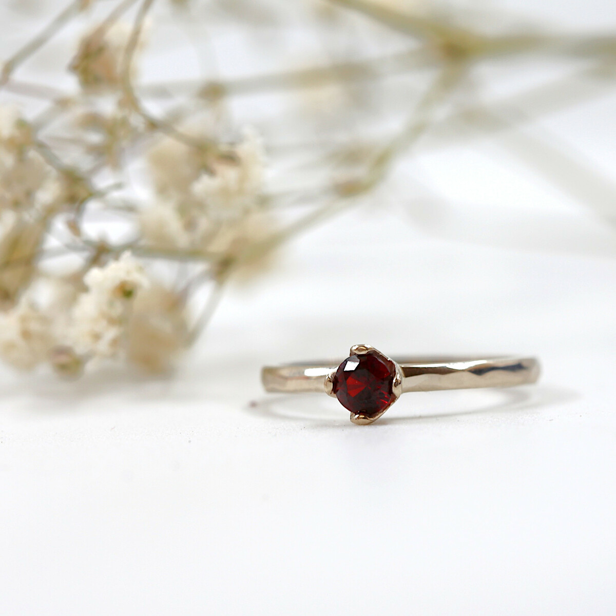 Tomuto nádhernému prsteňu dominuje prírodný granát, ktorý svojím sýtočerveným odtieňom priťahuje pohľady a vnáša do vášho života energiu a vášeň. Granát je nielen esteticky očarujúci, ale je známy aj pre svoje ochranné vlastnosti a schopnosť prinášať silu a pozitívnu energiu.
