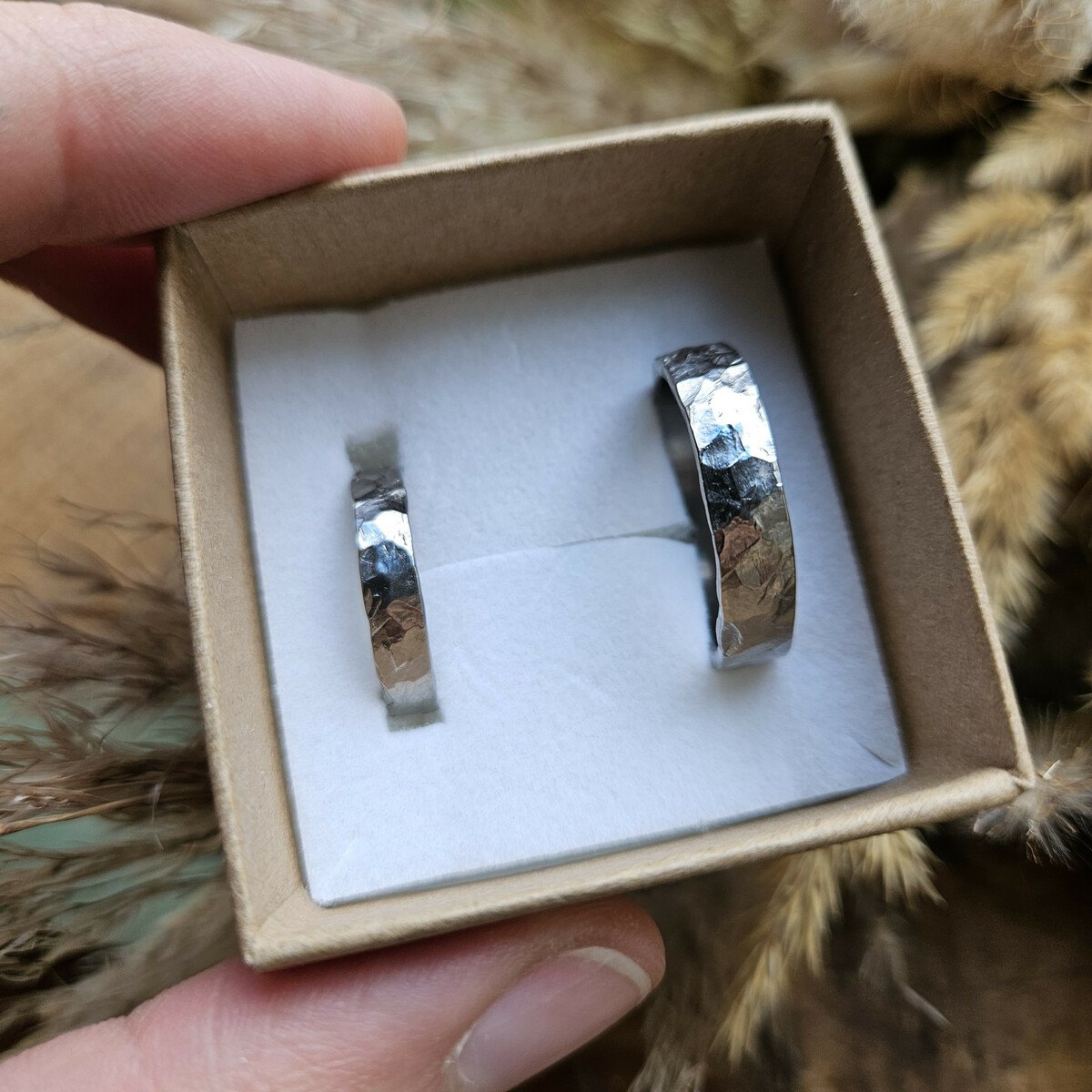 Ručne kovaný prsteň z hypoalergénneho titánu – ľahkého, pevného a elegantného kovu s moderným striebornosivým odtieňom. Ponúkame ho ako snubný prsteň, ale nemusí sa používať len na tento účel – vďaka svojej odolnosti, nízkej hmotnosti a nadčasovému vzhľadu je ideálny na každodenné nosenie a doplní váš štýl.