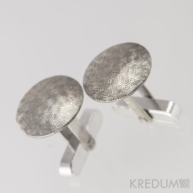 Jsou ručně kované z nerezové oceli damasteel ve struktuře koleček, jemně kované a ztmavené. Ozdobu tvoří na jejich středu pecka ze stříbra ryzosti 0,925. Rub ozdoby je hladký, aby netrhal košili.
