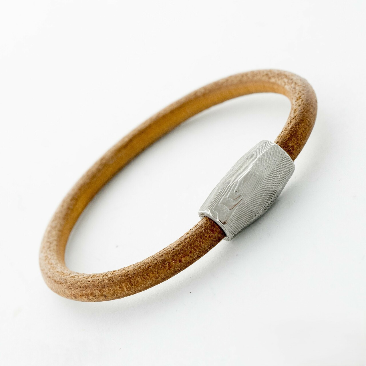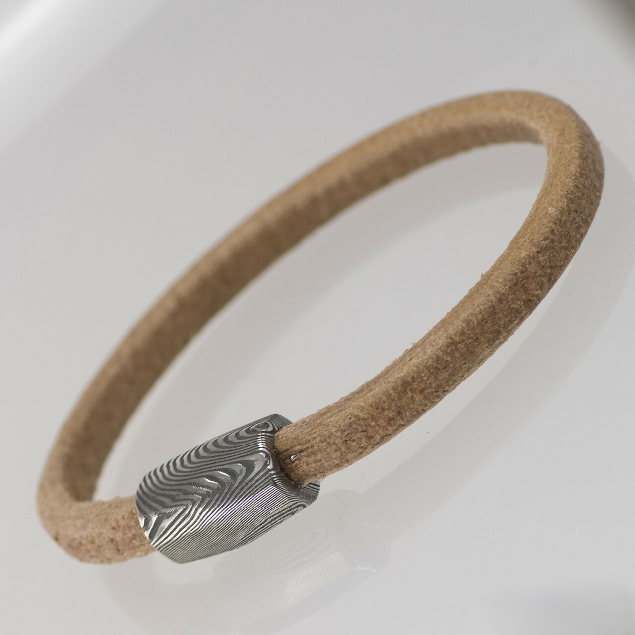 Náramok je odnímateľný, jednoduché zapínanie je ukryté pod korálkou. Kožu je možné skrátiť aj doma a dĺžku náramku upraviť.
