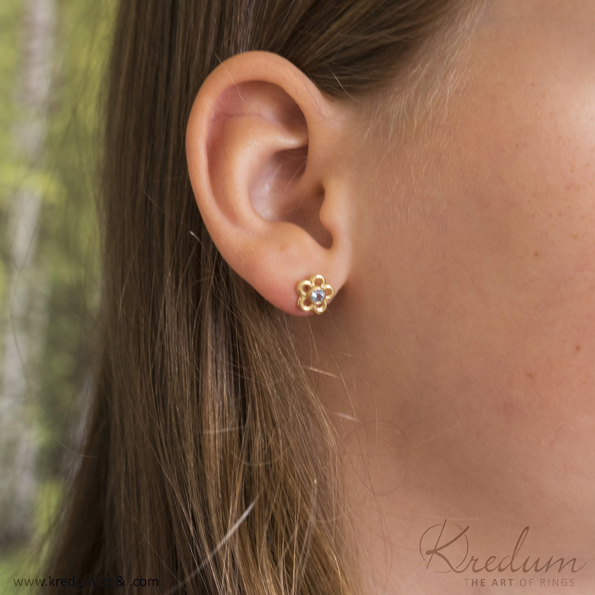 Zlaté náušnice ve tvaru kytiček - Flower s topazem.