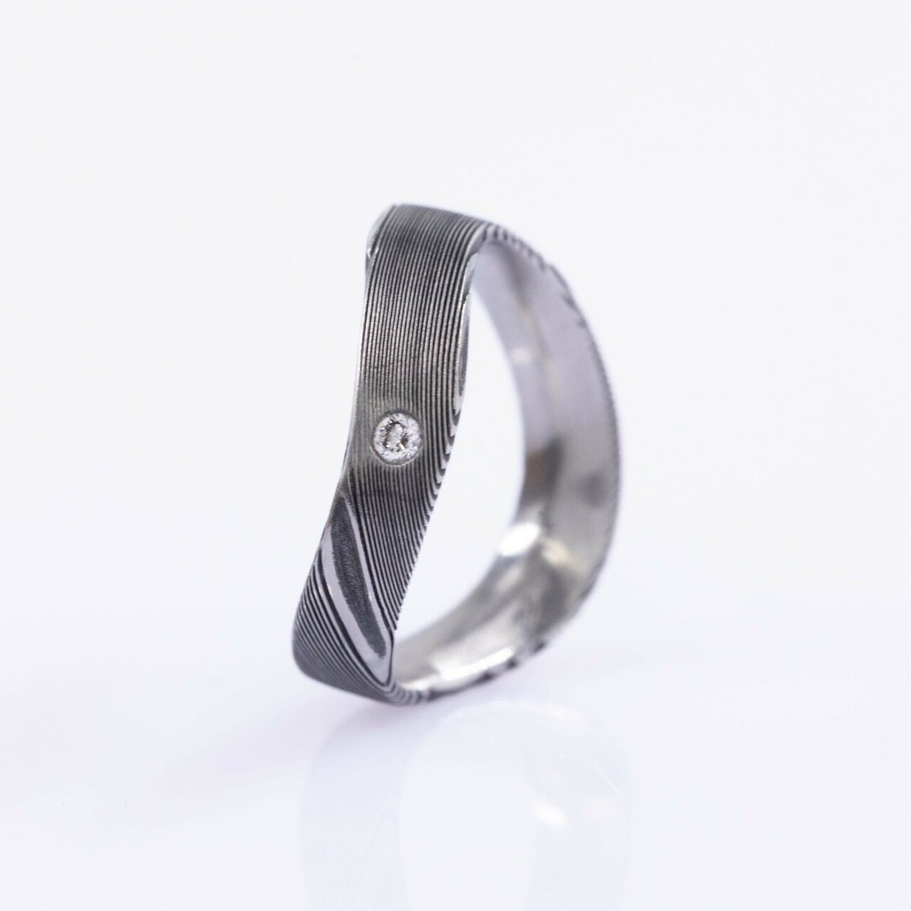 Prsten je kovaný z nerezové oceli damasteel.