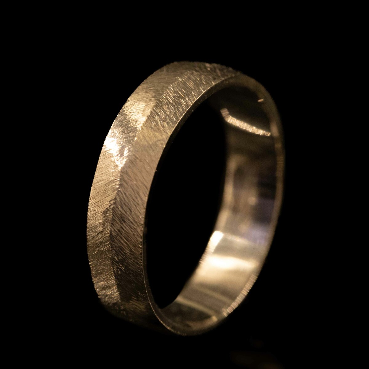 Povrch je výrazně strukturovaný. Vnitřek prstenu je přebroušen do hladka a vyleštěn.