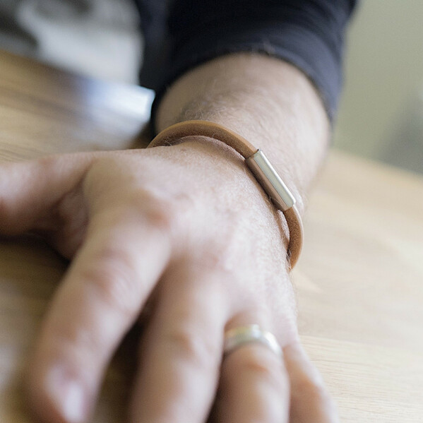 Náramok je odnímateľný, jednoduché zapínanie je ukryté pod korálkou. Kožu je možné skrátiť aj doma a dĺžku náramku upraviť.