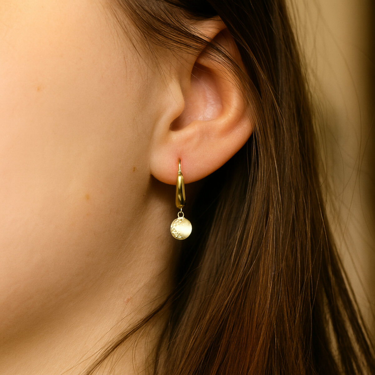 Zlaté kruhové visící náušnice Marro ze žlutého zlata ryzosti 0,585.