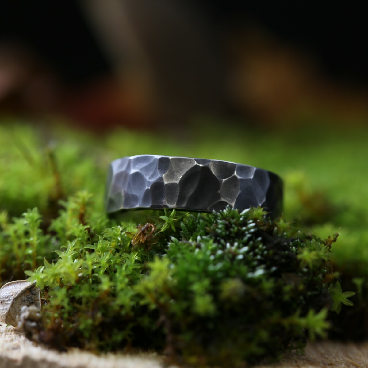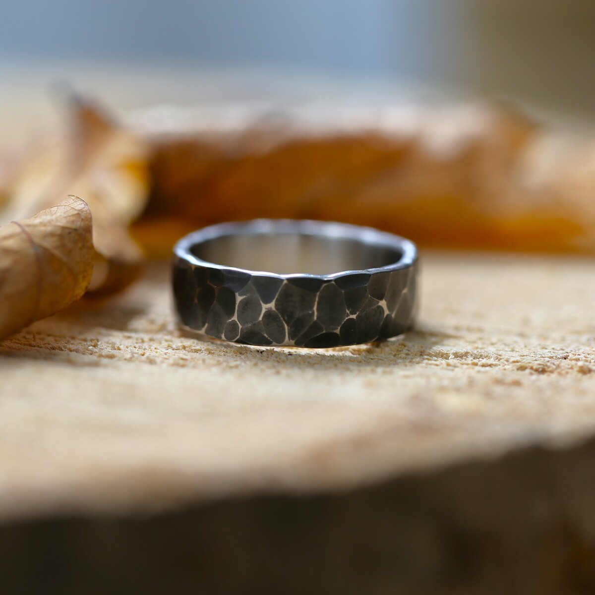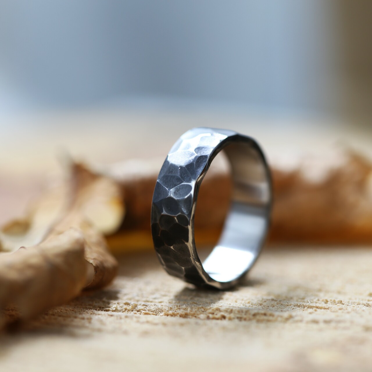 Prsten je ručně kovaný z nerezové antialergické oceli.