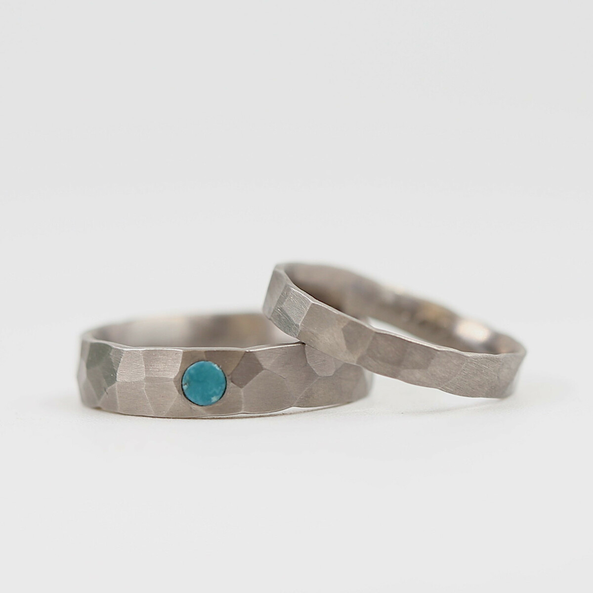 Povrch prstenu ponechán tak, aby byly vidět údery kladiva a je zmatněn. Vnitřek prstenu je přebroušen dohladka a vyleštěn.