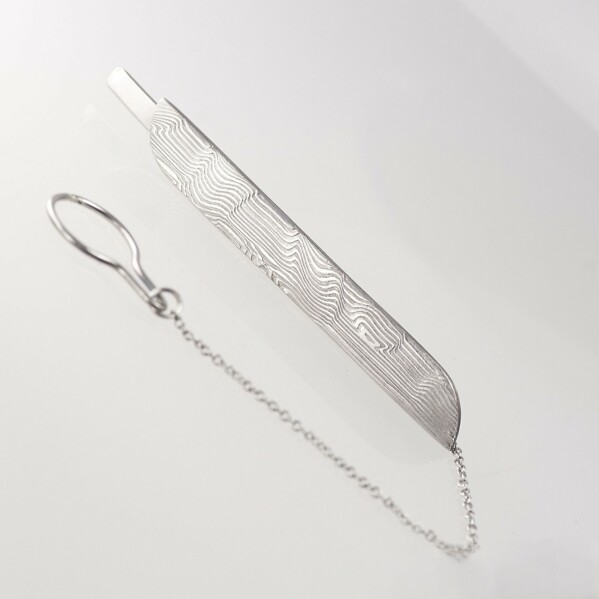 Vyroben je z nerezove oceli a má délku cca 10 cm. Jeho součástí je očko k přichycení na knoflík u košile.