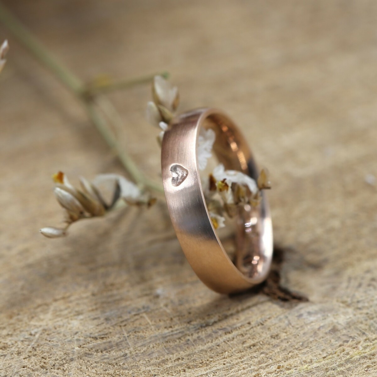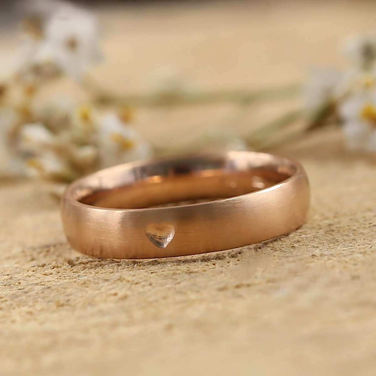 Prima gold red a vyryté srdce - matný - zlatý snubní prsten
