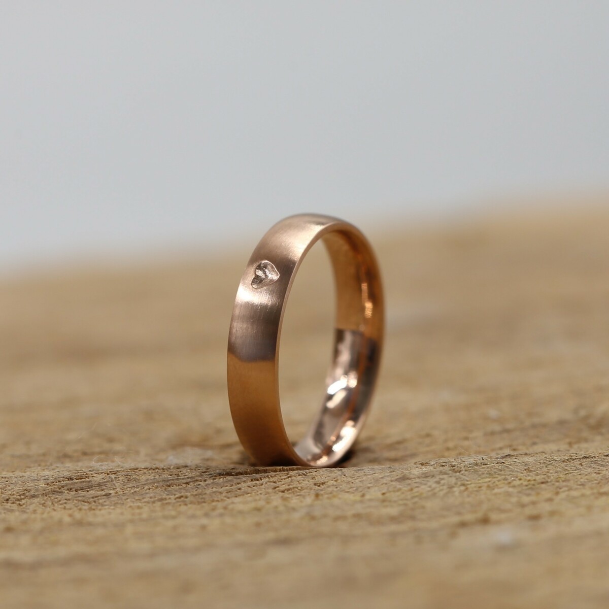 Klasický, jednoduchý kroužek s hladkým povrchem. Vnitřek je přebroušen dohladka a vyleštěn, aby byl prsten pohodlný na nošení. Prsten je matný, ale lze ho vyrobit také v lesku.