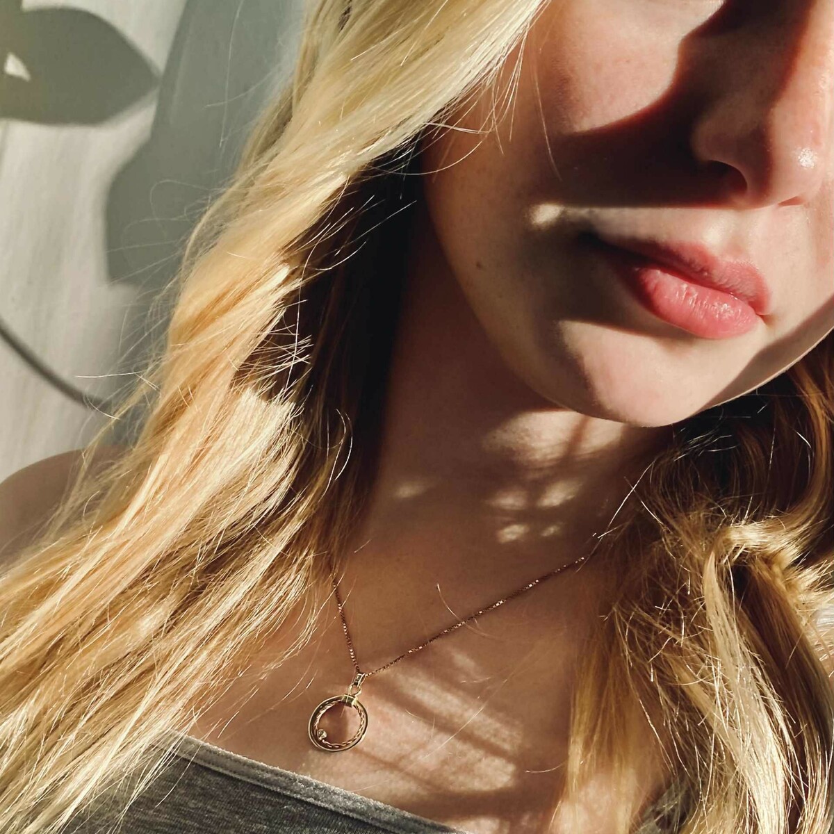 Prívesok je vyrobený z kombinácie bieleho a žltého zlata, doplnený 1,7 mm briliantom, ktorý jemne žiari a dodáva šperku luxusný vzhľad. Minimalistický kruhový tvar symbolizuje harmóniu a nekonečno – ideálny darček pre niekoho výnimočného alebo štýlový doplnok na každodenné nosenie.