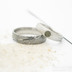 Ručně kované snubní prsteny z nerezové oceli damasteel. Jedná se o materiál, kde dochází k vrstvení dvou nerezových ocelí. Tím vzniká neopakovatelná struktura, která dává prstenům nevšední a jedinečný vzhled připomínající dřevo. Lze je vyrobit také v jiných strukturách.